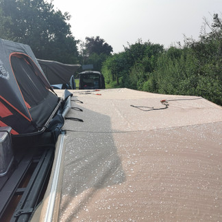 Der eigene Urlaub ist leider ziemlich ins Wasser gefallen. Hier hat es sich aber bewährt auf die neue Markise aufzurüsten, und sowohl die Markise als auch der Prototyp des Robin Pro haben sich bewährt. Die Markise deckt endlich die komplette Fahrerseite des Ranger ab - aus der Fahrertür bis unter das Zelt ohne nass zu werden - das war nicht mal bei der "normalen" 270Grad Markise, die ich vorher hatte, so.